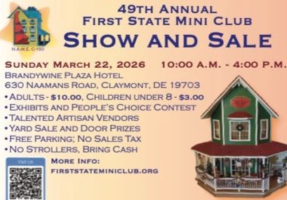 Discover the fascinating world of dollhouse miniatures with the First State Mini Club. Join our community of hobbyists, collectors, builders, artisans, and enthusiasts who share a passion for creating and collecting miniature masterpieces. Stay updated with upcoming events, access valuable resources, and connect with fellow miniaturists. We meet 7-9 PM every third Thursday of the month, except for October which is usually the fourth Thursday, at the New Castle Senior Center. Summer and deep winter meetings are virtual.